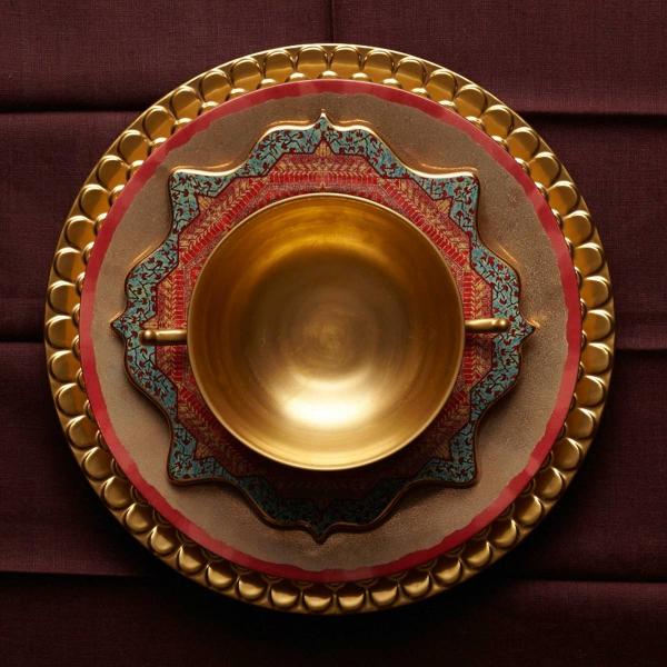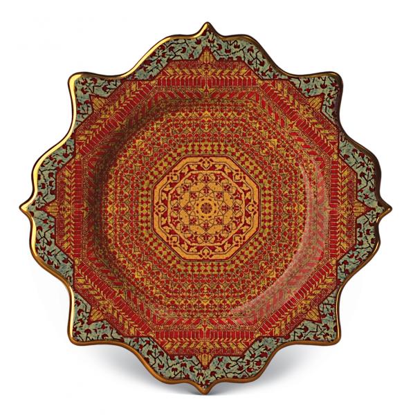 Produced in one of the world’s oldest weaving centers, Tabriz textiles are a marvel of color and technique. The artistry of the L'Objet Tabriz collection recalls a stroll through an old world marketplace, with each piece offering a rich tapestry of texture and hues. Made of earthenware with hand-gilded 24K gold accents.