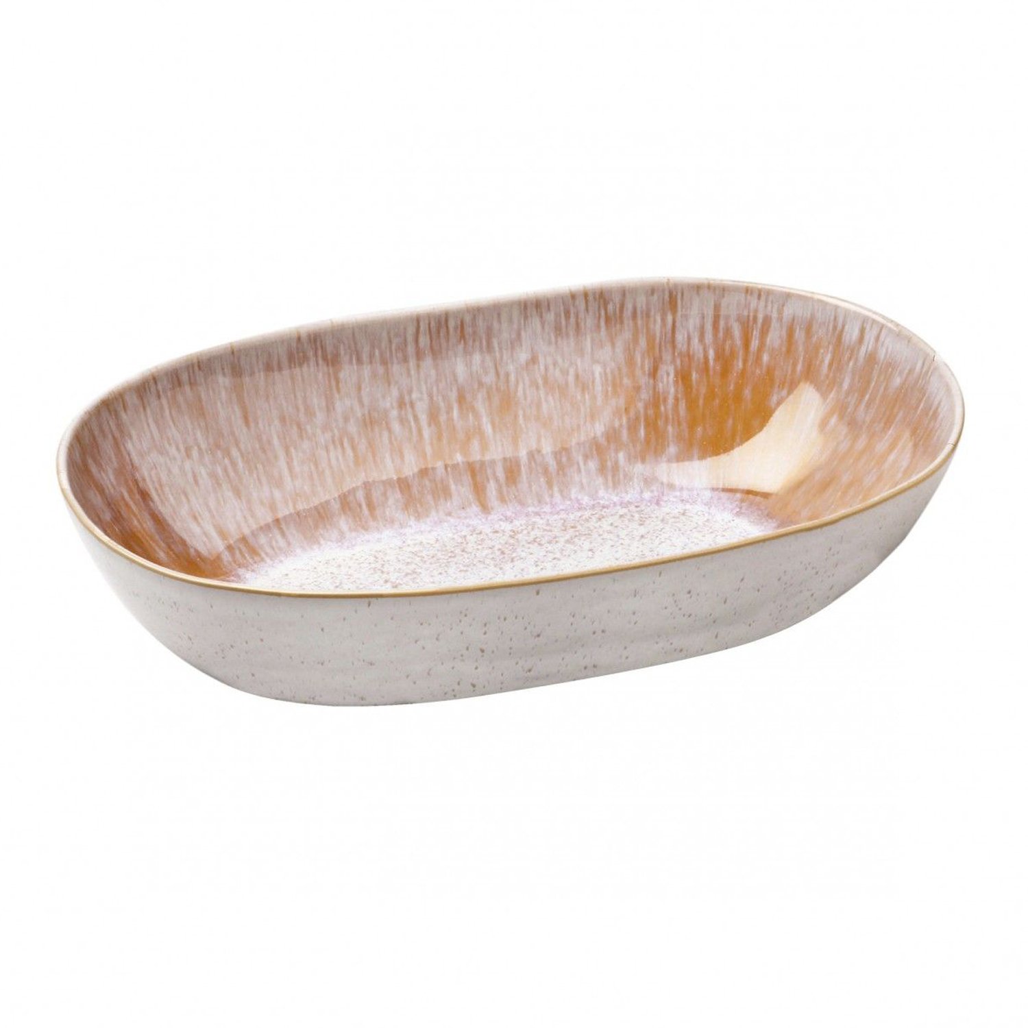 The Casafina Ibiza Medium Oval Bowl is coated with an artful reactive glaze and high-fired to create a unique constellation of milky speckles over solid interiors. The white exterior enhances its minimalist styling, allowing the spectacular interior finish to take center stage. Made in Portugal.