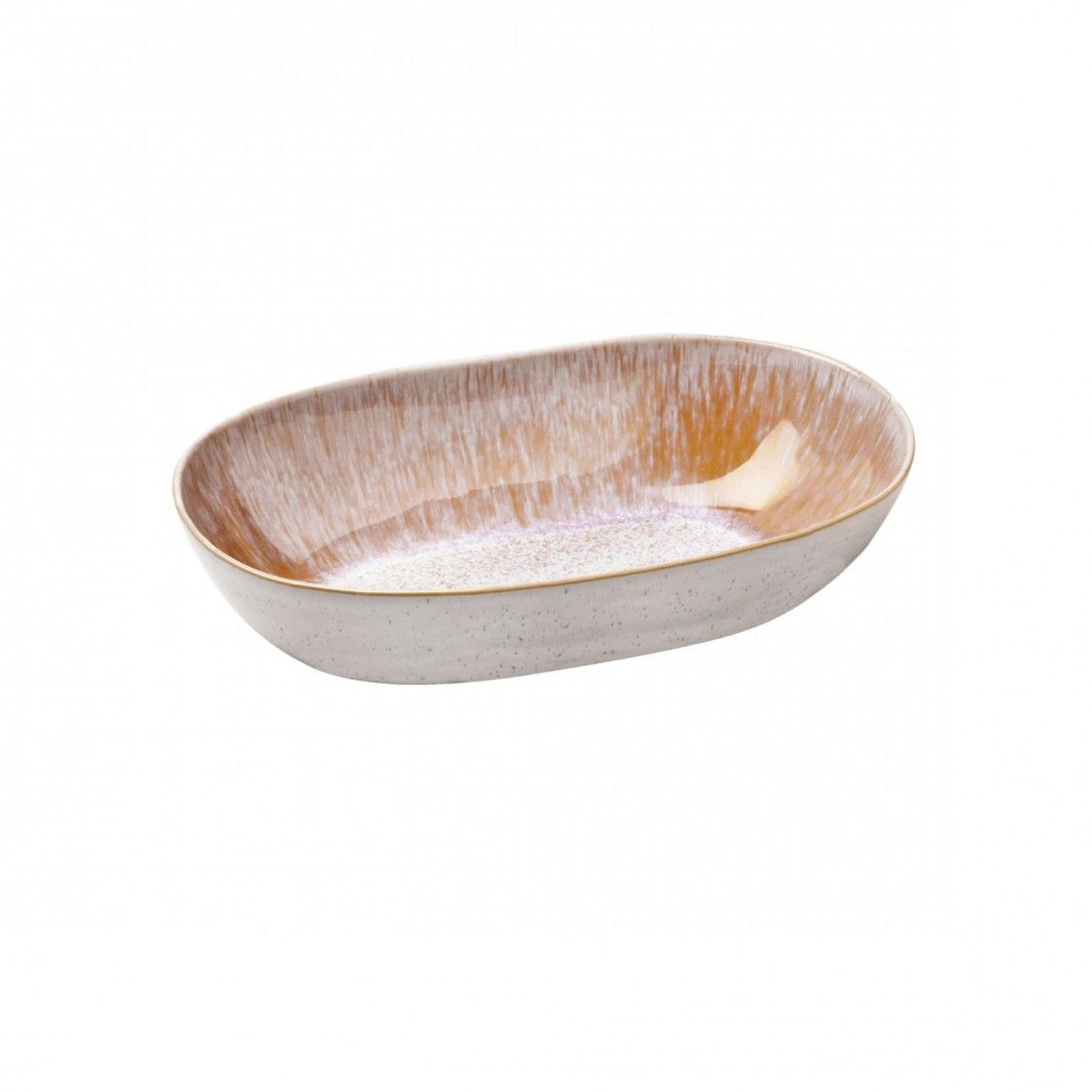The Casafina Ibiza Small Oval Bowl is coated with an artful reactive glaze and high-fired to create a unique constellation of milky speckles over solid interiors. The white exterior enhances its minimalist styling, allowing the spectacular interior finish to take center stage. Made in Portugal.