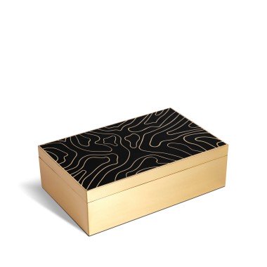 Inspired by the layers and interweaving lines on a topographic map, the Isles collection includes modern and functional pieces to elevate the home. Each piece is crafted using the finest Macassar ebony wood covered in resin with brass accents. The linear and organic surface design makes a clean and bold statement.
