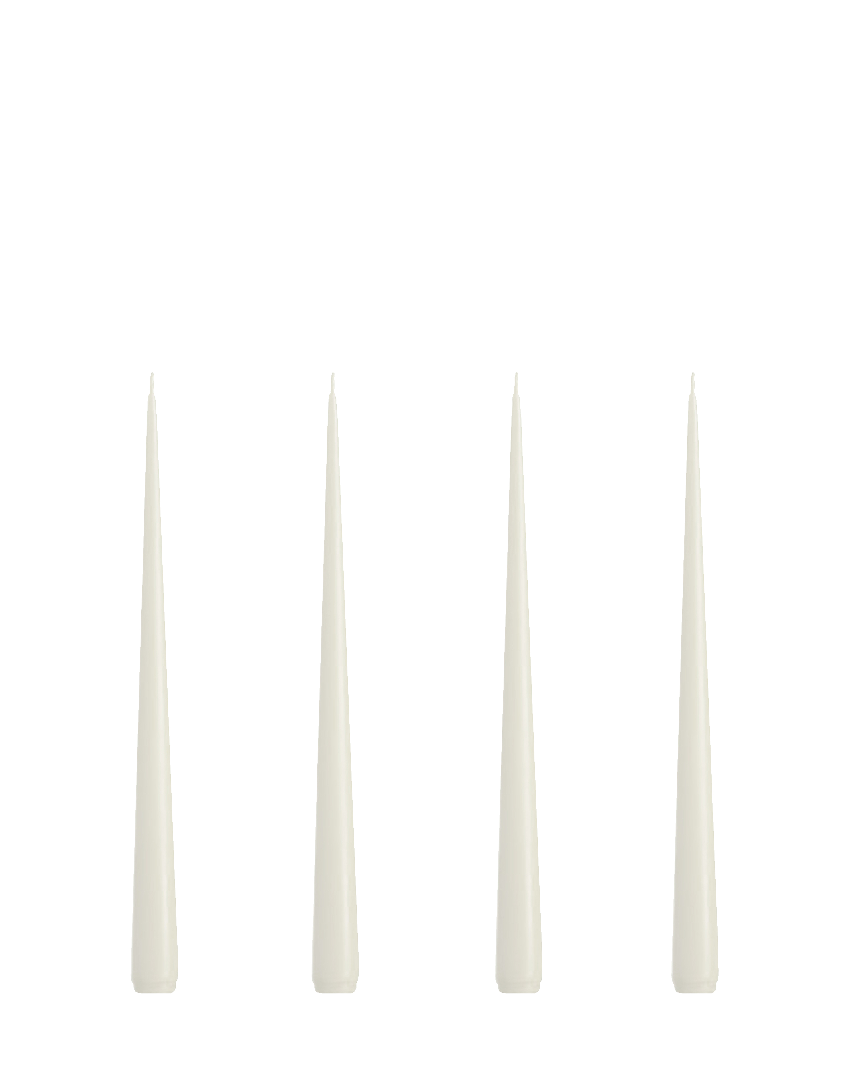 Ester & Erik self-extinguishing candles burn with a beautiful steady flame and are non-drip, provided they aren't exposed to draft. Conically shaped in the bottom so they fit most candlesticks. Handmade, long, lean and with the thin elegant point that is the Ester & Erik trademark.