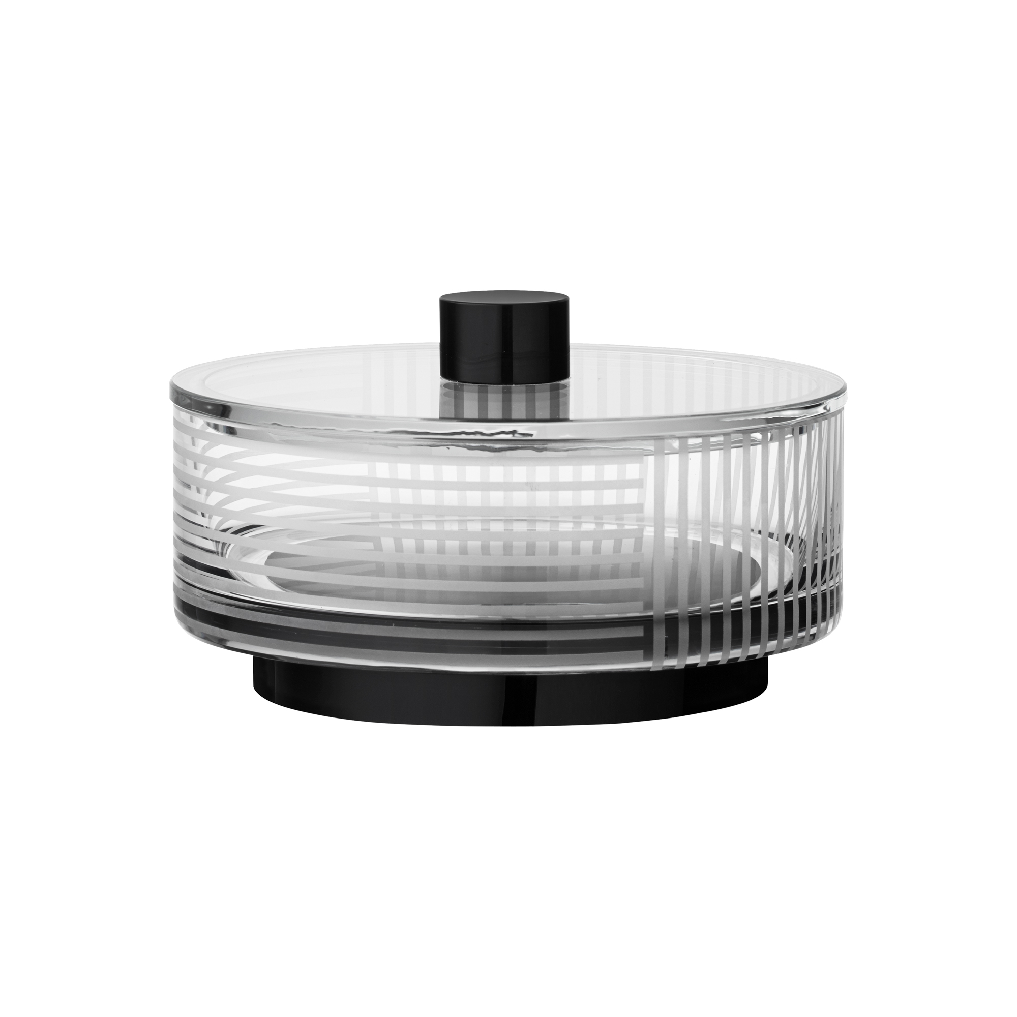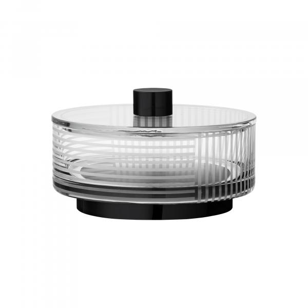 Delightful Vitreus designs in crystal glass and with hints of art deco style. This extravagant jar is made interesting with a sandblasted pattern, black glass base and a lovely lid that will elevate the art of serving sweets to a whole new level.