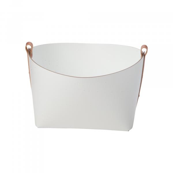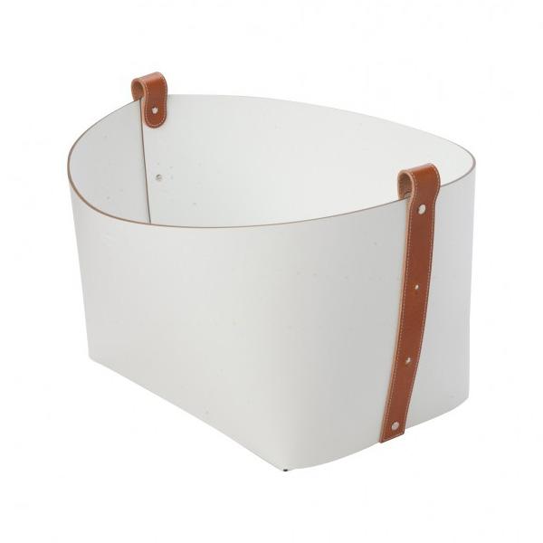 Small Leather Magazine Basket - White with Brown Strap