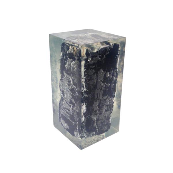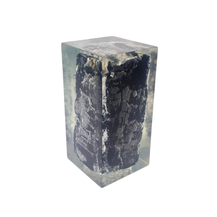 Burned pine or whitewashed teak is sent in resin with amber crystals.