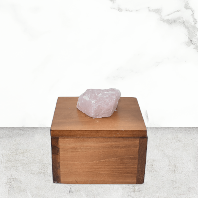 Natural Wood Jewelry Box with Rose Quartz Chunk