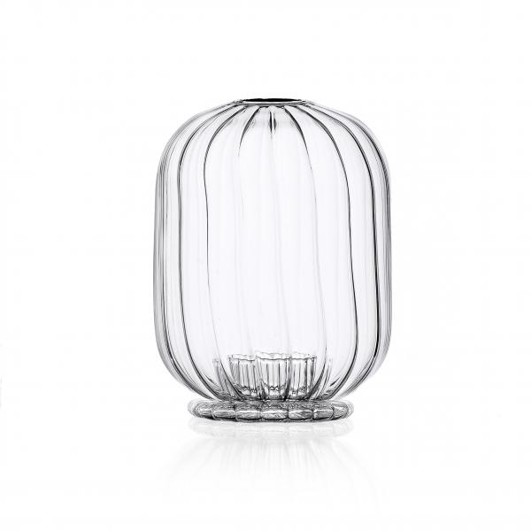 Taken from the 'Cha No Yu' collection, designed by Denis Guidone for Ichendorf, this tea light lantern is inspired by Japanese tea ceremonies. Crafted from heat-proof borosilicate glass, the lantern comfortably holds a single tea light while its bulbous shape accentuates the luminosity of the candle's light.
