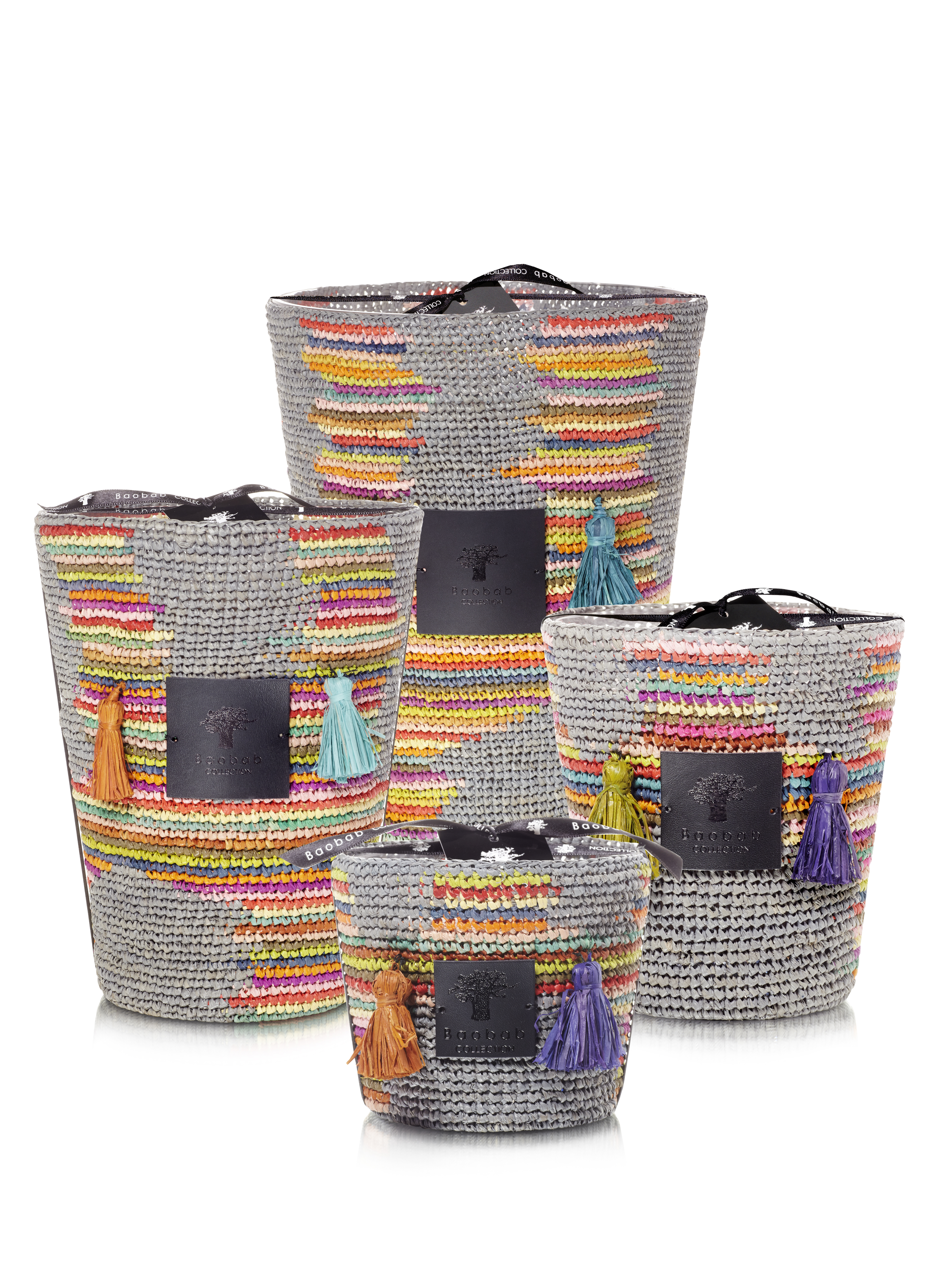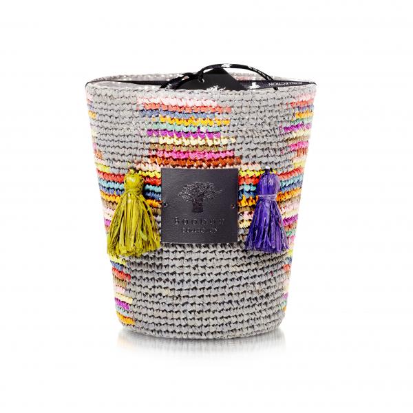 The Babou candle, written as “Baboho” in Malagasy, is an ode to the root that has allowed the Mikea people to survive in such a dry forest due to its capacity to store large amounts of water and sugar. The tribe keeps its location a secret. The candle’s multicolored tree motif is a celebration of life, of joy, and of the Malagasy arti- sans’ incredible mastery of color. Decked out in pom poms, the Babou candle takes you to the decadence of a summer‘s day by the beach with its ylang ylang and salt flower scent. Limited Edition.
