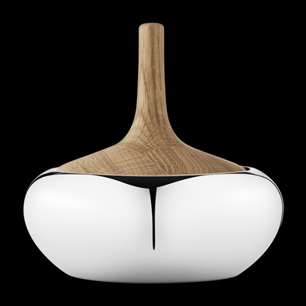 Materials: Mirror polished stainless steel and oak wood Measurements: H: 114 mm Ø: 120 mm