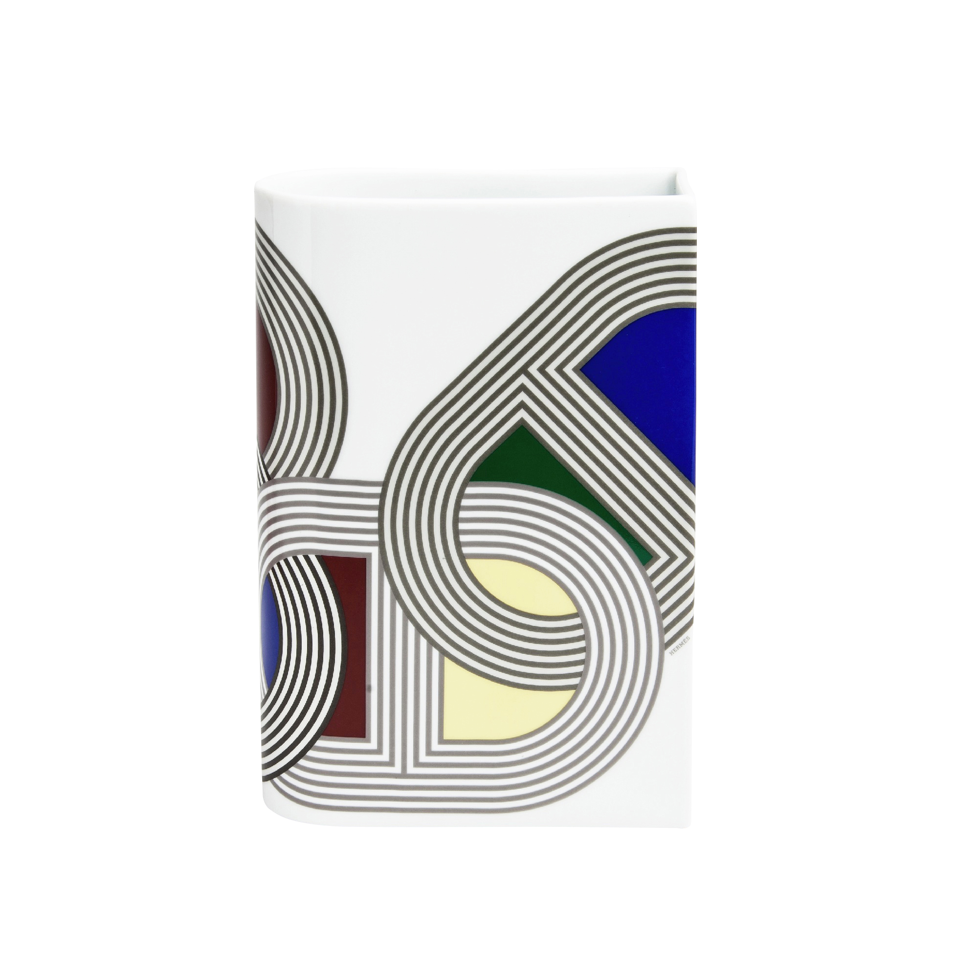 The "Chaîne d'Ancre" link transforms into a racetrack! Benoit-Pierre Emery and Damian O’Sullivan sign this new contemporary table service with a daring aesthetic. Innovating with both its exclusive shapes and freedom of composition. Colors echoing back to the body works of the famous automobile stables. They match through combinations of plain or polychrome pieces. This distinguished geometric table service is composed of exclusive and stackable shapes. Multipurpose and customizable: a playful and adjustable tableware service; for everyday or more formal use, a multicolor or monochrome version.