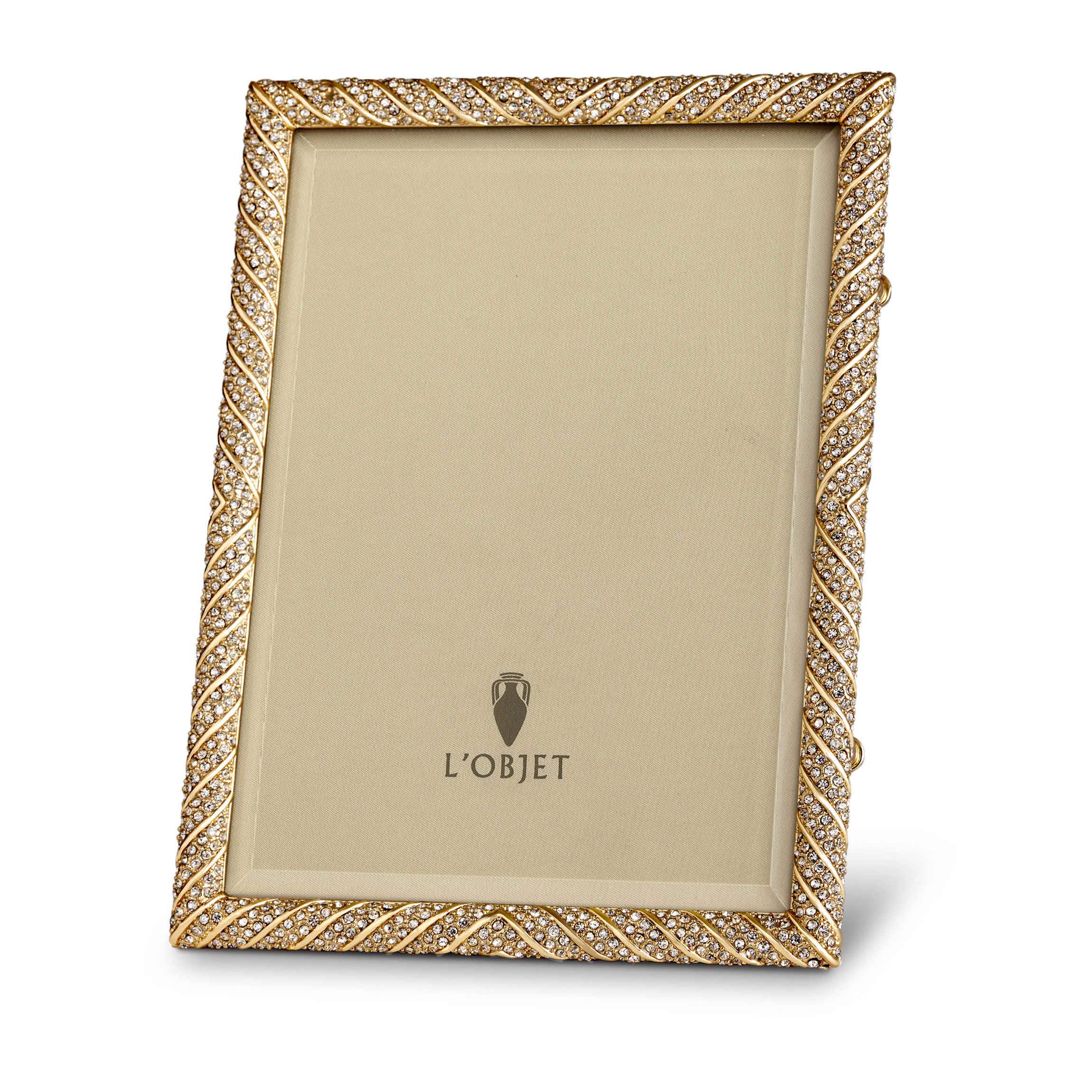 Emulating centuries of fine jewelry design and technique, L'Objet frames are meticulously handcrafted and incorporate details such as Swarovski crystals, 24K gold and platinum plating, beveled glass, satin lining and Italian leather and suede backs with beautifully detailed closures.