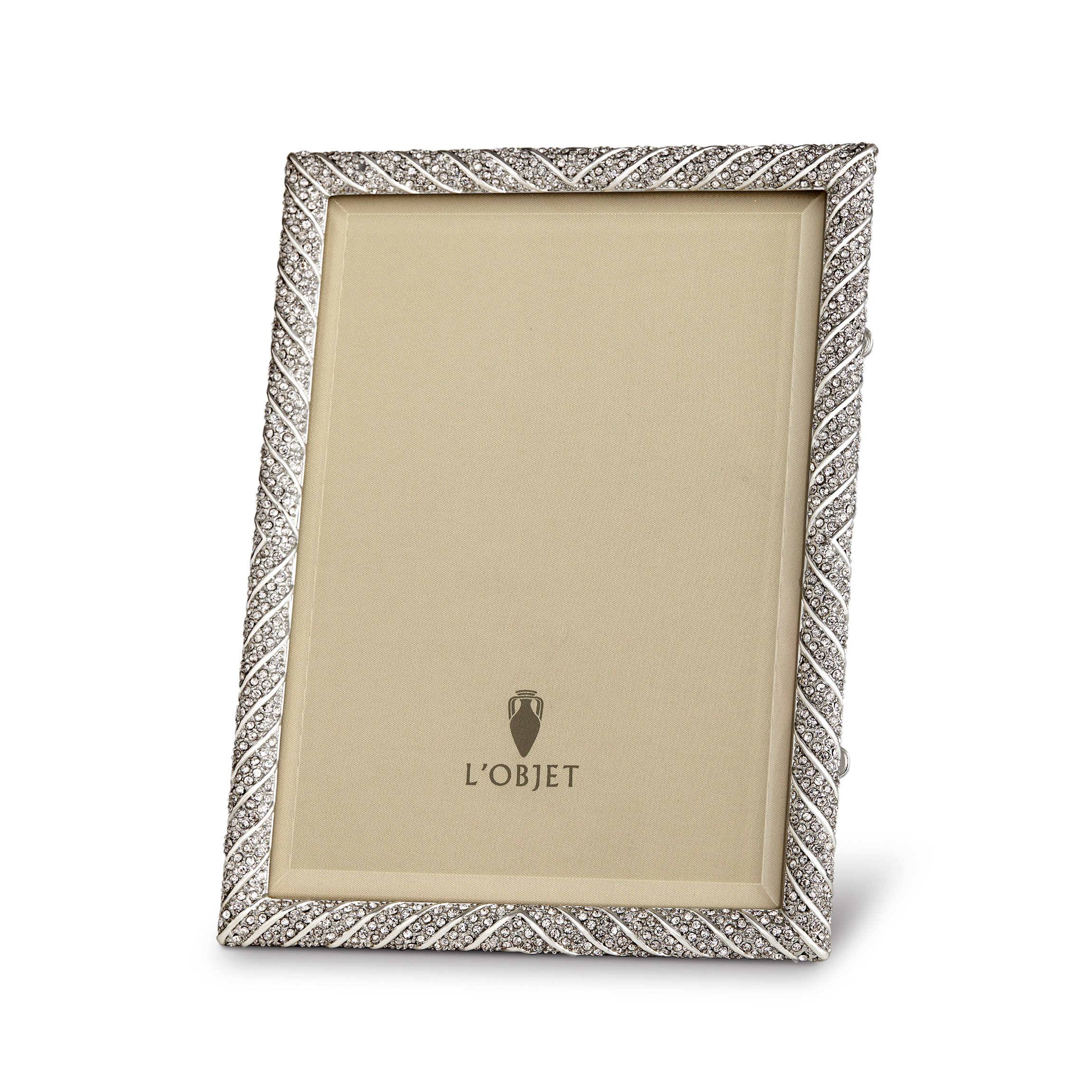 Emulating centuries of fine jewelry design and technique, L'Objet frames are meticulously handcrafted and incorporate details such as Swarovski crystals, 24K gold and platinum plating, beveled glass, satin lining and Italian leather and suede backs with beautifully detailed closures.