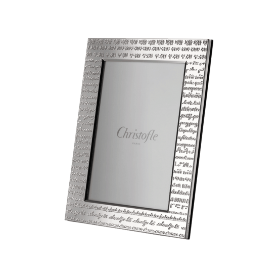 Simultaneously add a dash of elegance to décor and personalize a space by displaying a favorite moment in the silver plated 3” x 5” photo frame. Designed by Clara Halter, the Paix collection has the word “peace” etched in 49 languages. Add an engraved plaque that affixes to the back to make it a unique gift.