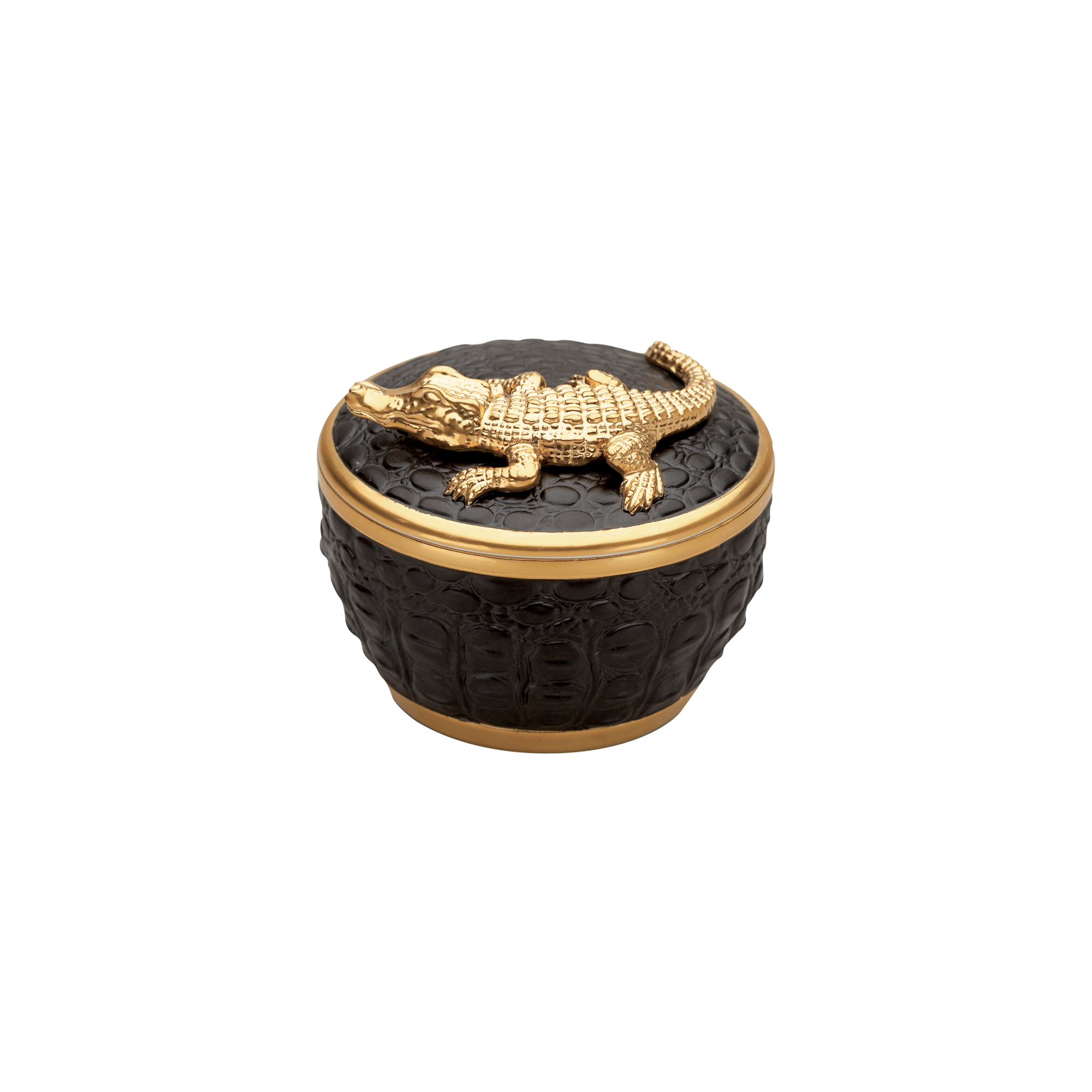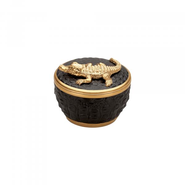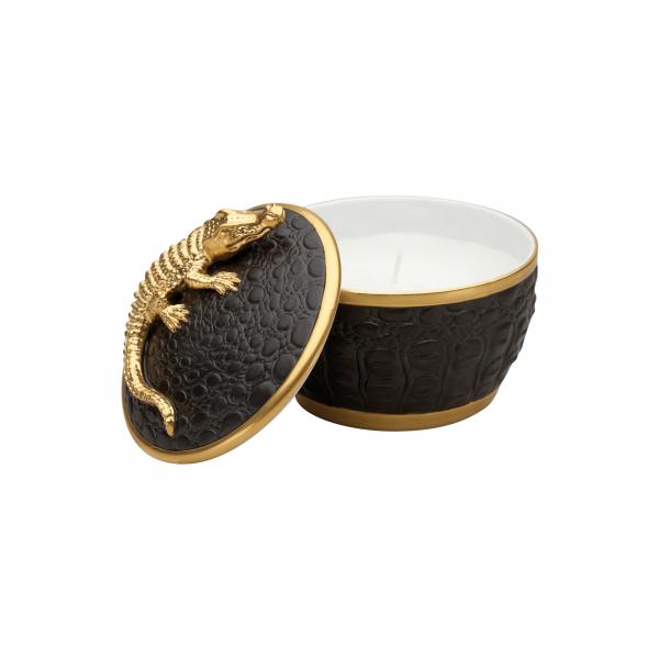 Gold Crocodile Candle on Black Porcelain Base