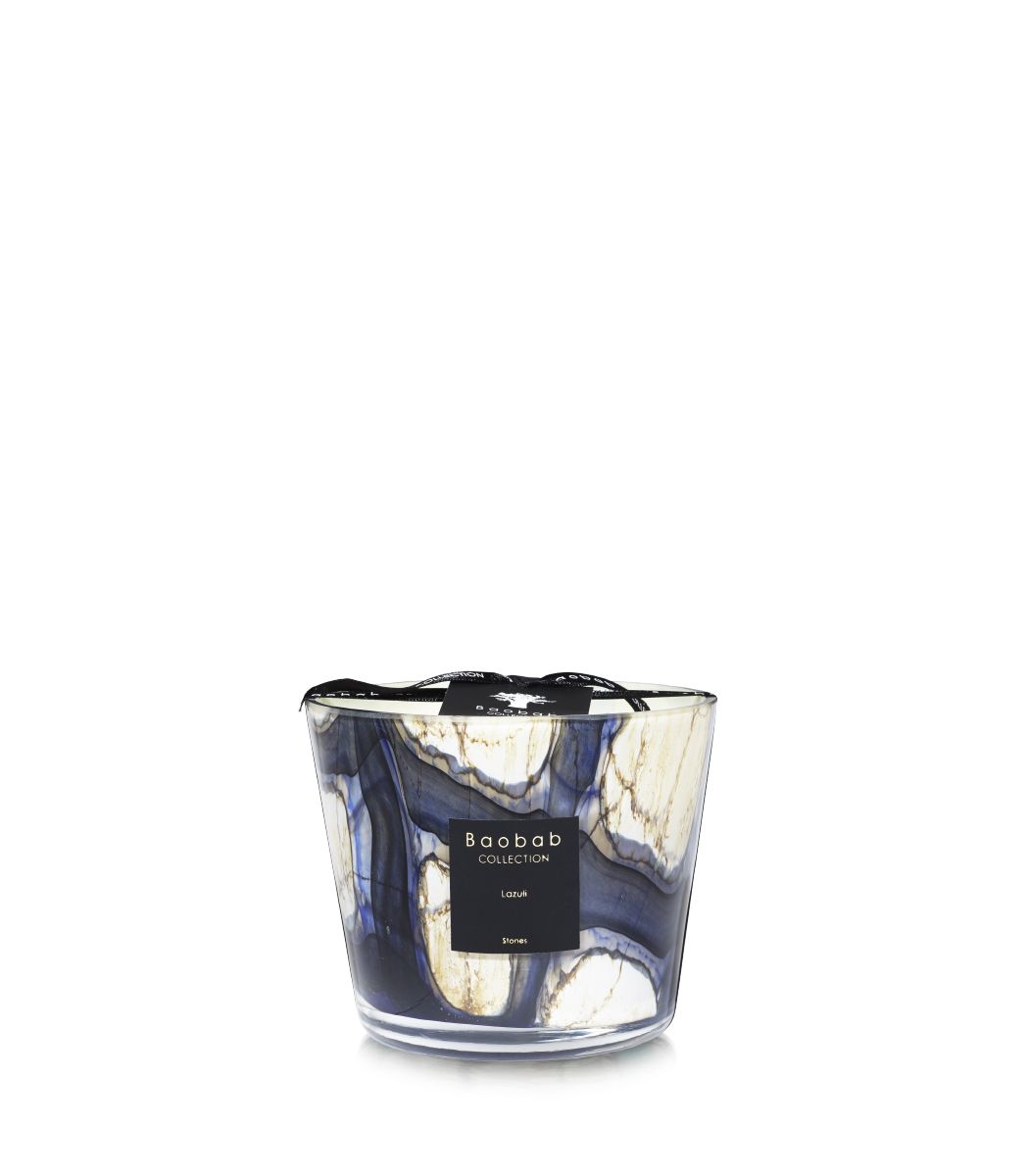 The scented candle is a timeless piece of sophistication and elegance. Its marbled glass with intense blue effects perfectly illustrates the amazing personality of Lazuli Stones.