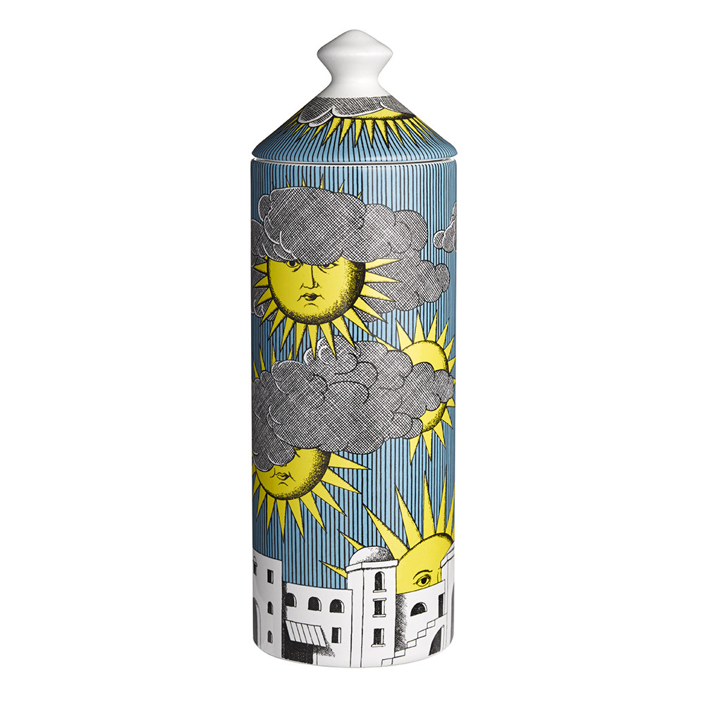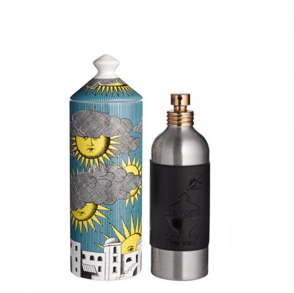 Piero Fornasetti had a great passion for Capri and created this fantasy décor before he ever visited the island. The new scent "Sole Di Capri" captures the mixture of the sea air and the surrounding citrus trees.