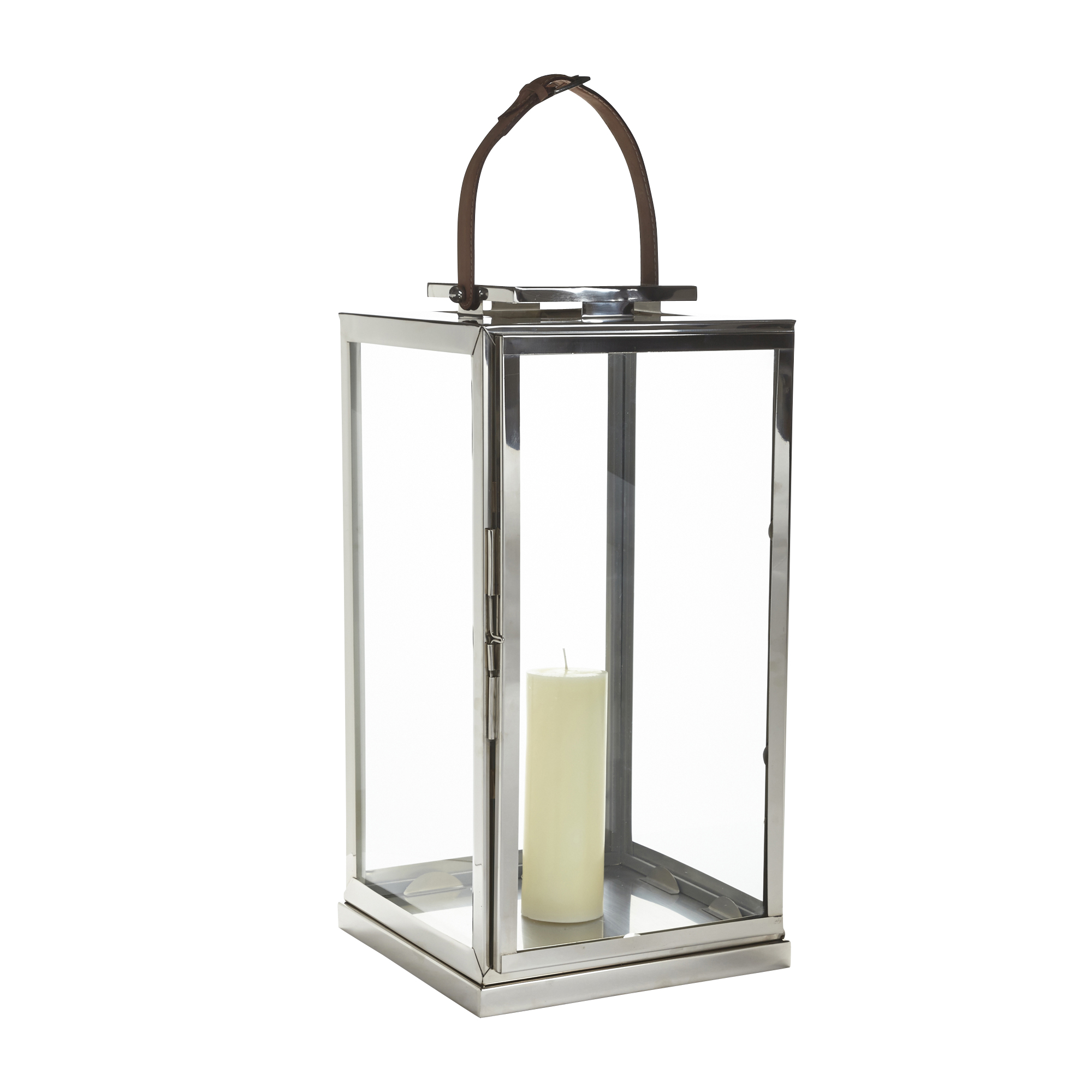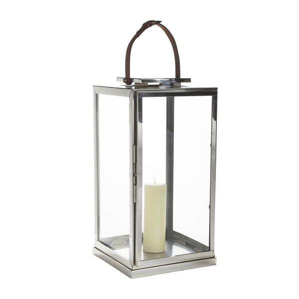 Create a candlelight display with our handsome leather + metal lanterns year-round