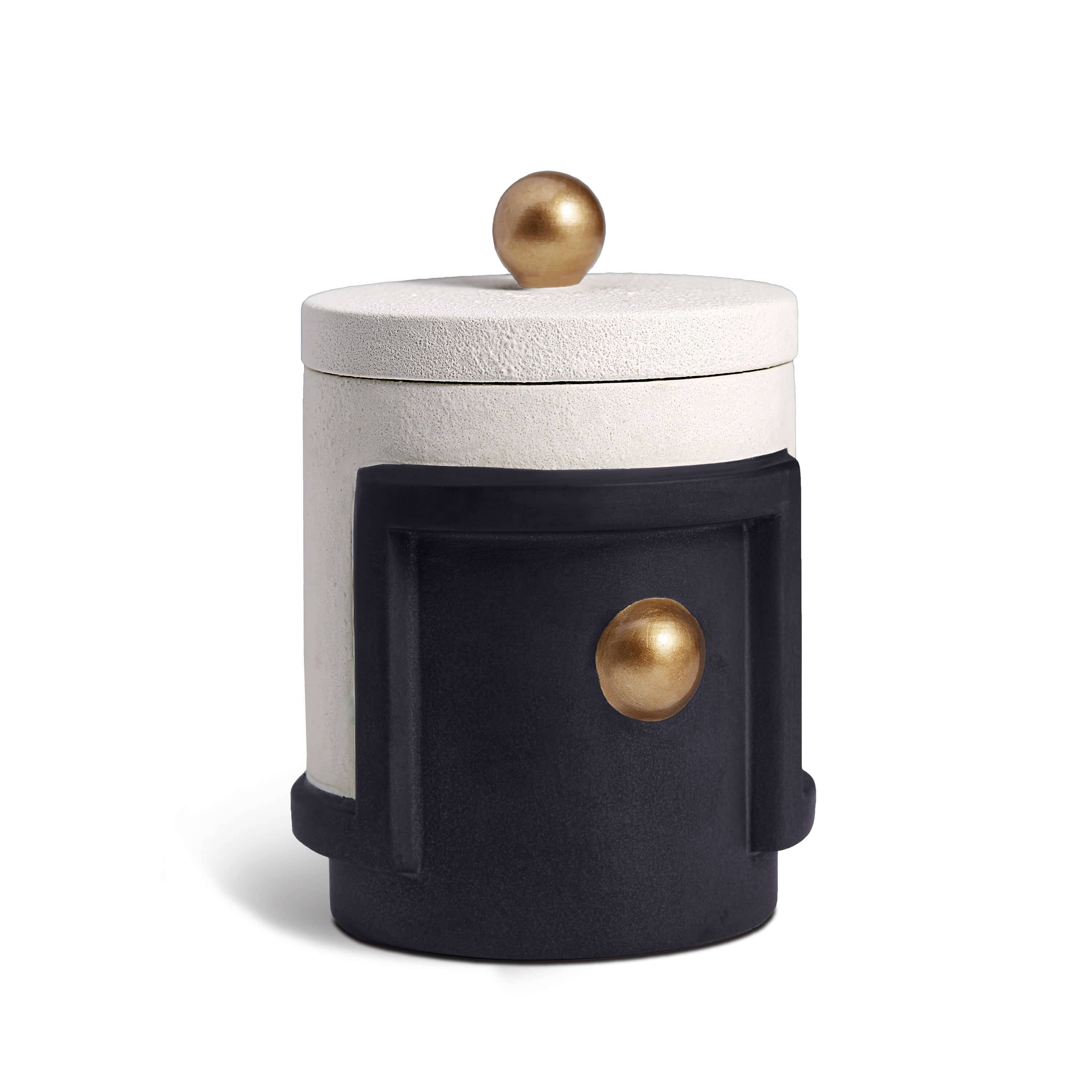 In Cubisme, abstracted forms are remodeled with concrete simplicity into decorative pieces for the home. A striking 3-wick candle with black wax or single wick with white wax contain an alluring new vetiver, citrus and moss fragrance developed with perfumer Yann Vasnier. Each piece is meticulously crafted from fine earthenware and finished with lightly textured black and white matte glazes.