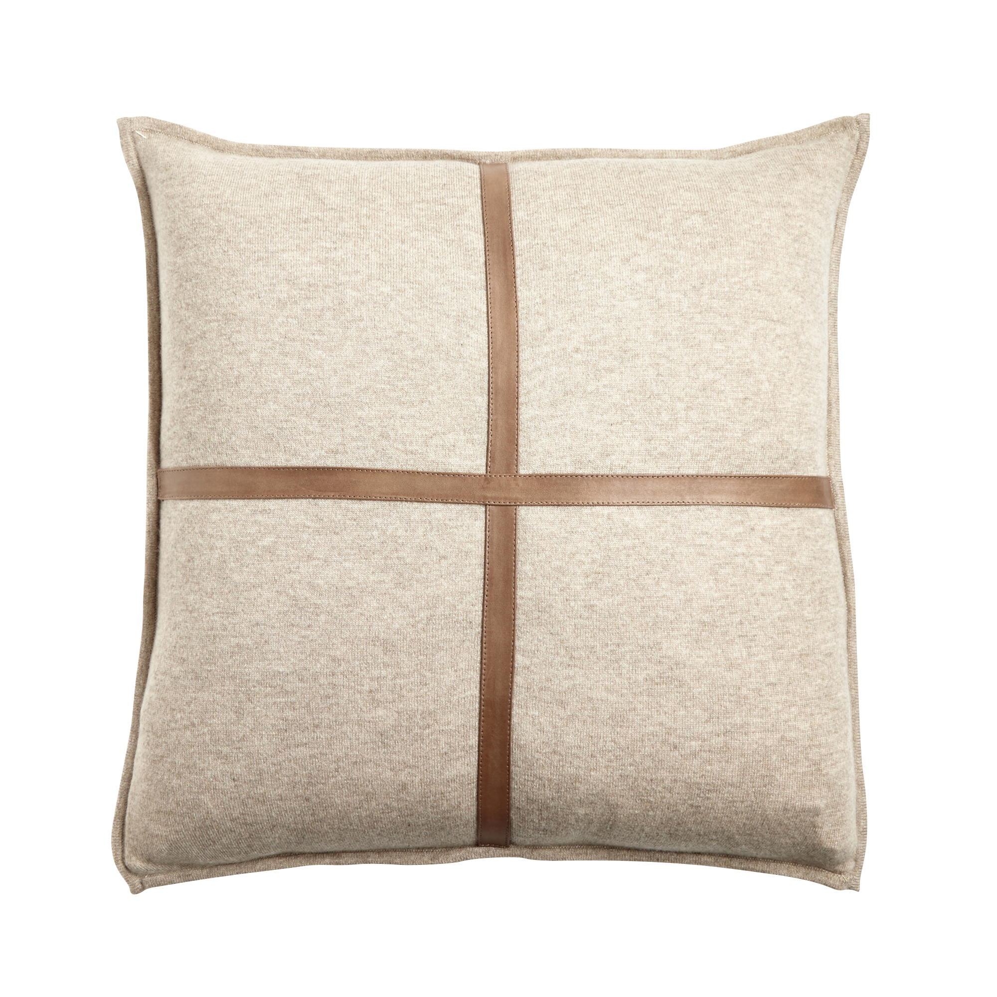 Be cozy and stylish with this 100% cashmere pillow with a suede cross design. Placed on a sofa or bed, it will bring texture and style to your home