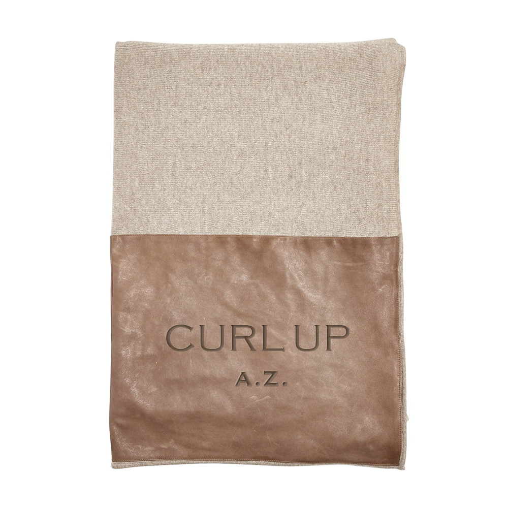 Taupe Cashmere and Leather Throw