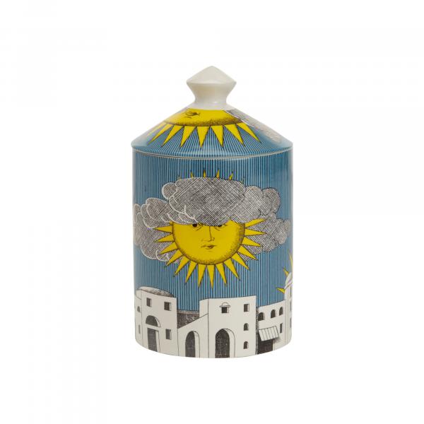 Piero Fornasetti had a great passion for Capri and created this fantasy décor before he ever visited the island. The new scent "Sole Di Capri" captures the mixture of the sea air and the surrounding citrus trees.