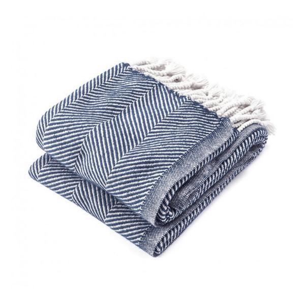 Living and Home Romantic Evening Alpaca Herringbone Throw Natural/Indigo