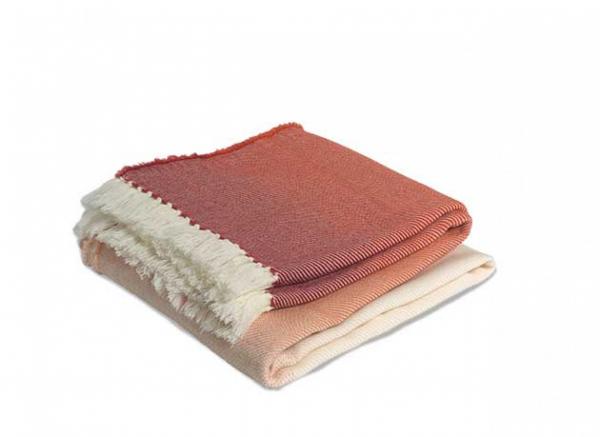 Super-fine wool from Europe. Designed and woven in Maine. This fine micron wool throw blends the long tradition of textile weaving with the genius of fine worsted spun wool. The tight twill pattern features a graduated ombre with a gorgeous tonal shift. Silky smooth and warm yet light as air. Finished with hand-knotted fringe.