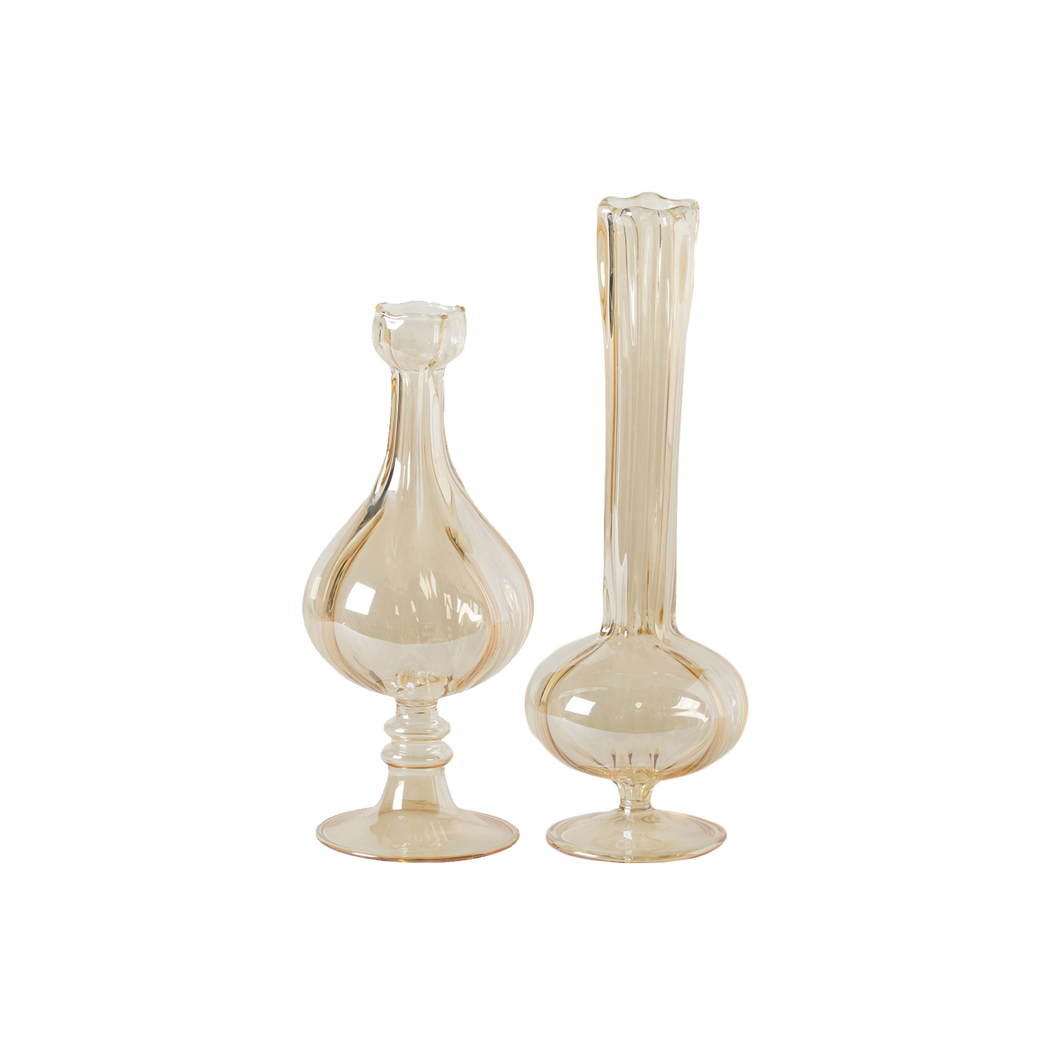 These mouth-blown vases' spherical shape and amber color create romance in any environment.