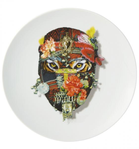 Make an extravagant addition to your table setting with the Love Who You Want Indi Tiger plate from Christian Lacroix. Crafted from bright white porcelain, this plate features a creative design in vibrant colours and can be mounted on a wall to create a focal point. Bring the mythical creatures of Christian Lacroix and Vista Alegre into your interior with this exuberant dessert plate.