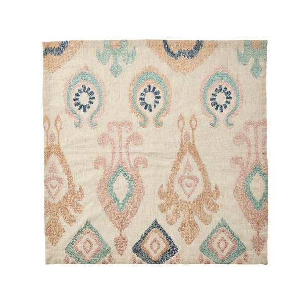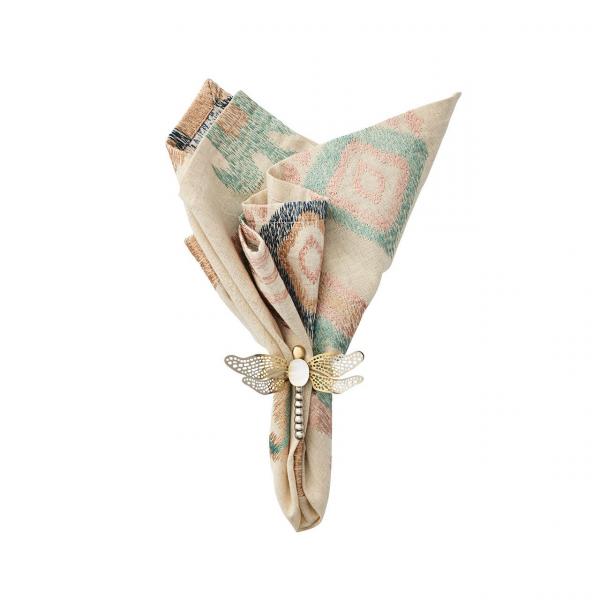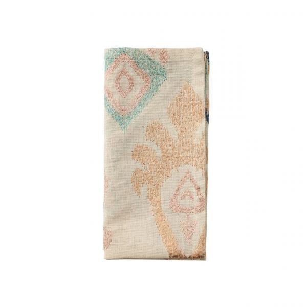 The new version of our Marrakech napkins calls to mind details on tunics from Morocco. The colors and spices of Marrackech are rendered in metallic embroidery on this ornate cotton linen napkin. Perfect if you are planning a spring gathering with a bohemian twist.