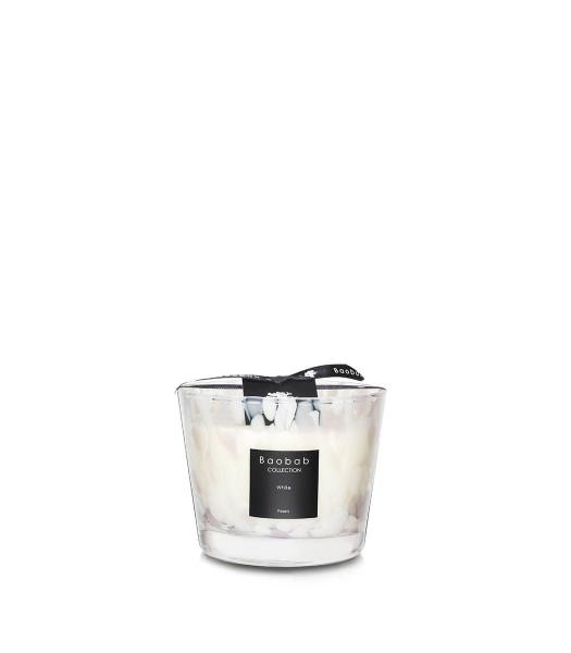 The Baobab White Pearls Max 210 scented candle provides an outstanding 60 hours of fragrant illumination with a delicate blend of white musk with floral notes and aromatic jasmine. Created by the Baobab Collection, a company renowned for its unique sensory and aesthetically pleasing offerings, the generously sized luxurious hand-poured mineral wax candle with four Egyptian cotton wicks features an eye-catching 3.9-inch tall hand-blown white marbled glass vessel, making it a lovely accent to the home.