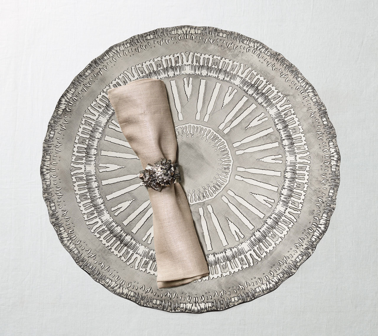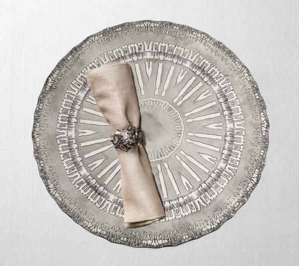 MATERIALS: 100% Linen with silver foil finish.