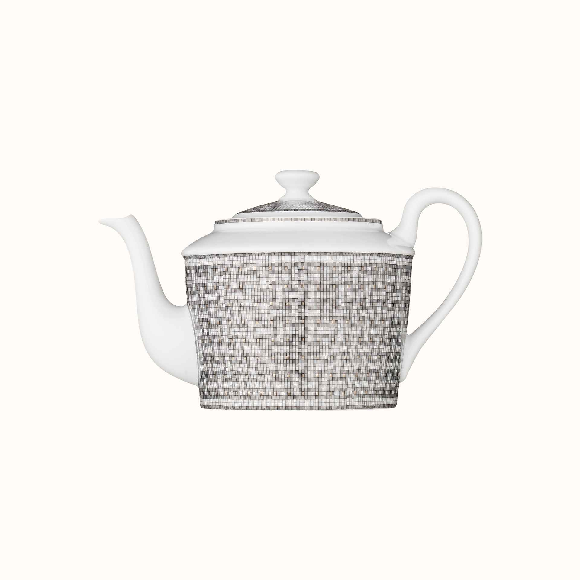 In homage to the mosaic which covers the floor of 24 Faubourg Saint-Honoré, the historic Hermès store, the geometric friezes in matte grey tones, enhanced with platinum, play with the light.
