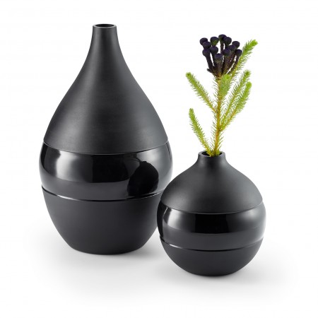 Above everything else, NEGRETTO is: Black. Deep black. The étagère the vases, as well as the bowl - the products of the NEGRETTO series, fulfill all visual aspects of modern design with their uniform appearance. Partly powder-coated, partly enameled - this successful mix of high gloss and matt surfaces create a rare high-level of quality. They’re accompanied by a softly rounded designed shape that will remain modern for many years to come. Each product, individually or as a set, for itself or also all together - there are no differences of opinion here.