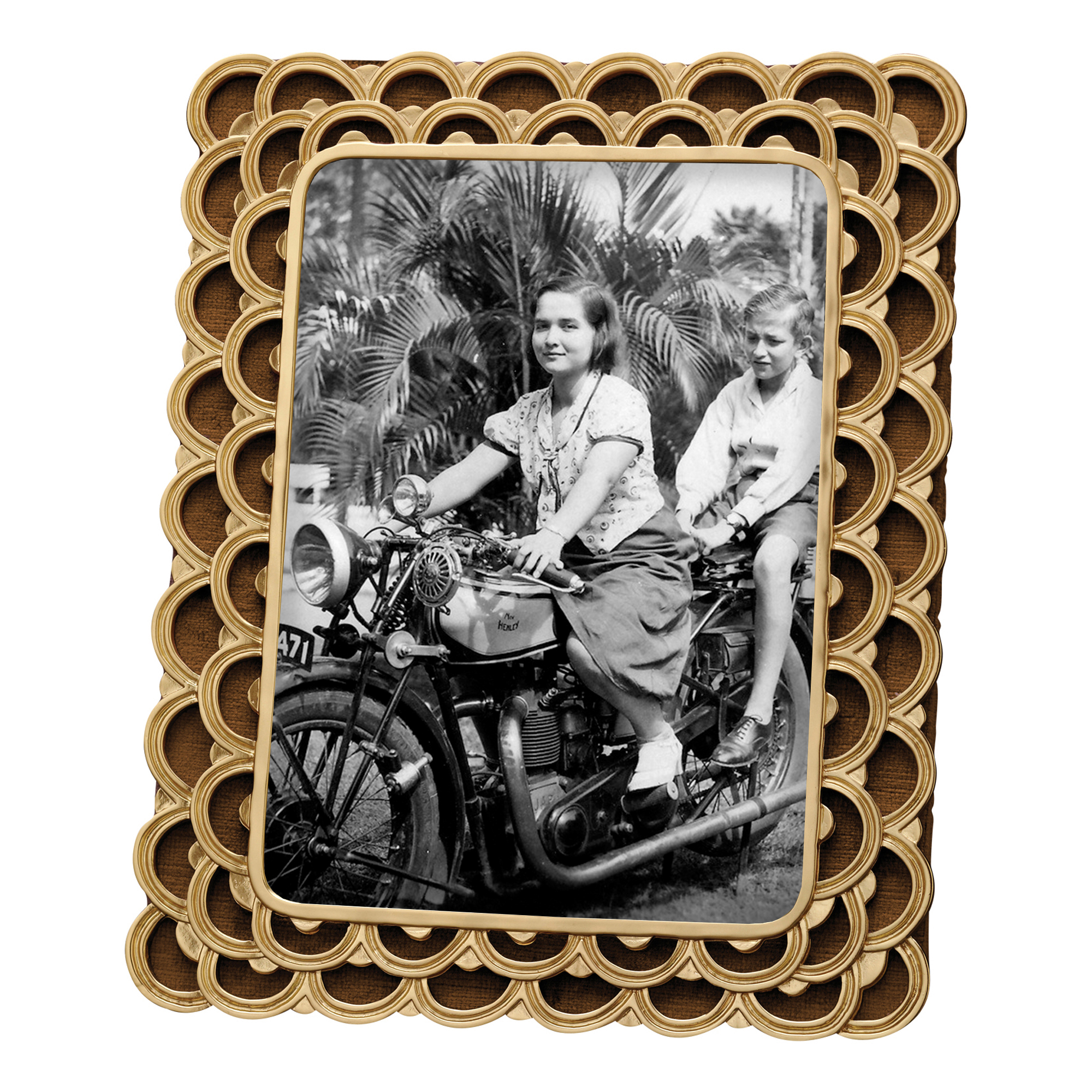 The artisans of Venice inspire us. Their carefully guarded secrets of technique have been handed down directly from the ancient world. There is one who especially speaks to the heart of L’OBJET - the legendary fashion and textile designer Mariano Fortuny. It sets the pattern and pace of this collaboration. Each frame is meticulously handcrafted and detailed with beveled glass, satin liner, suede back, and decorative closures.