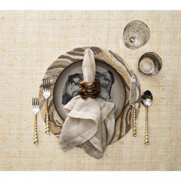 CARE: Wipe with a dry cloth, natural materials are used to make this napkin ring. It will reflect the unique variation organically found in nature. No two pieces will be alike.