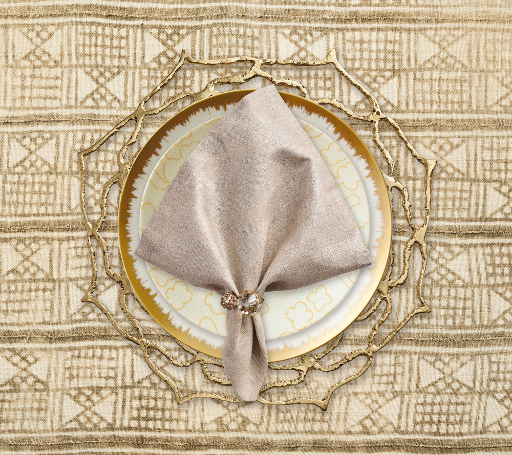 A luxe combination, crystal and rhinestones bedeck any setting for a glamorous touch. Pair with a simple linen napkin for an effortlessly chic look.