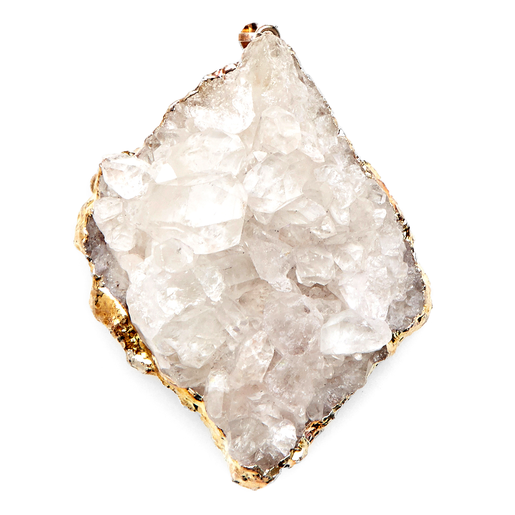 Large and small quartz stones come together to present a dreamy blend of cream and ivory tones in this exquisite pendant.