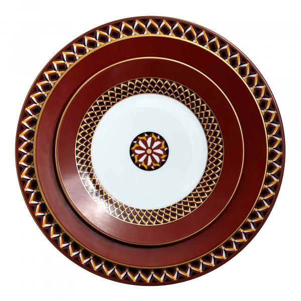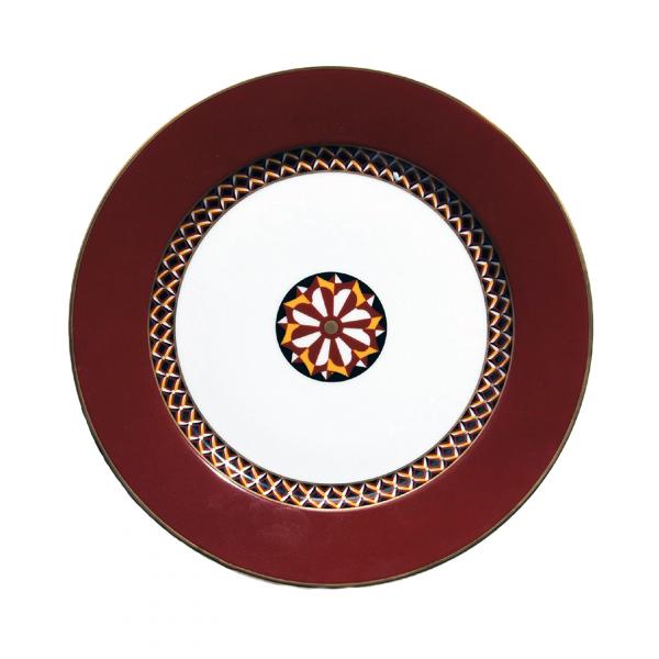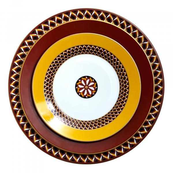 Designed by Suzanne Tucker, the San Marco collection combines rich hues with geometric patterns. This plate will add a pop of color and timeless opulence to your table.