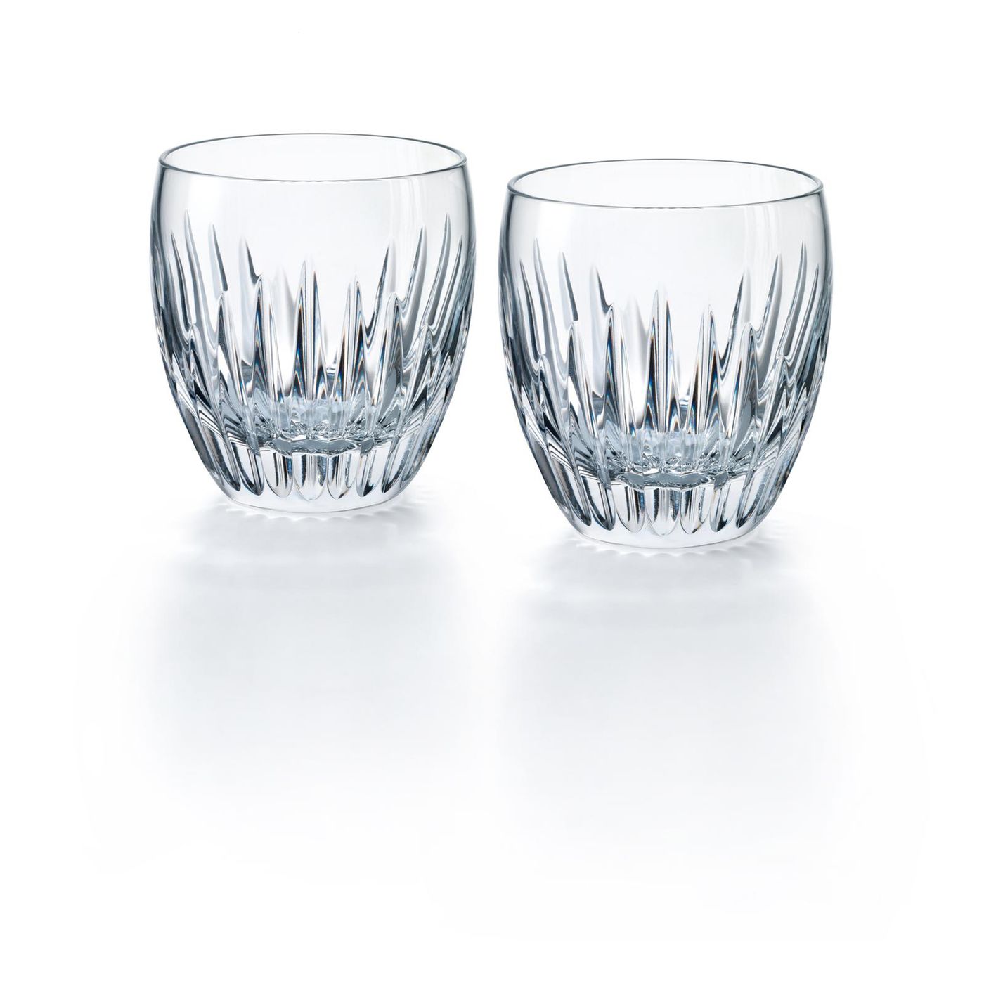 The Massena tumbler showcases Baccarat_s meticulous craftsmanship. Deep orgue bevel cuts irradiating from the base are etched directly into the clear crystal. The intricate detailing gives the Massena tumbler a barrel-like appurtenance and a textural feel. This artful handiwork puts the upper smoothness of the glass in sharp relief. The polished silhouette and prismatic qualities make it worthy of any festive occasion or special soir_e. The Massena tumbler is just one component of the Massena bar and tableware collection which encompasses Massena wine glasses highball glasses and a decanter all of which share a scrupulously textural quality.