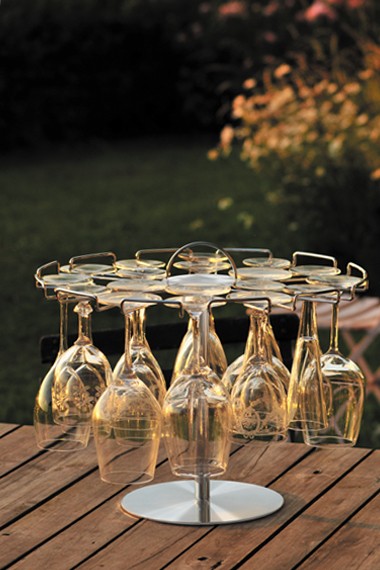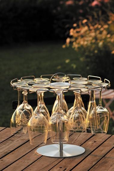 A tree to accommodate and present wine tasting glasses in an elegant and compact way, whether permanent or temporary.