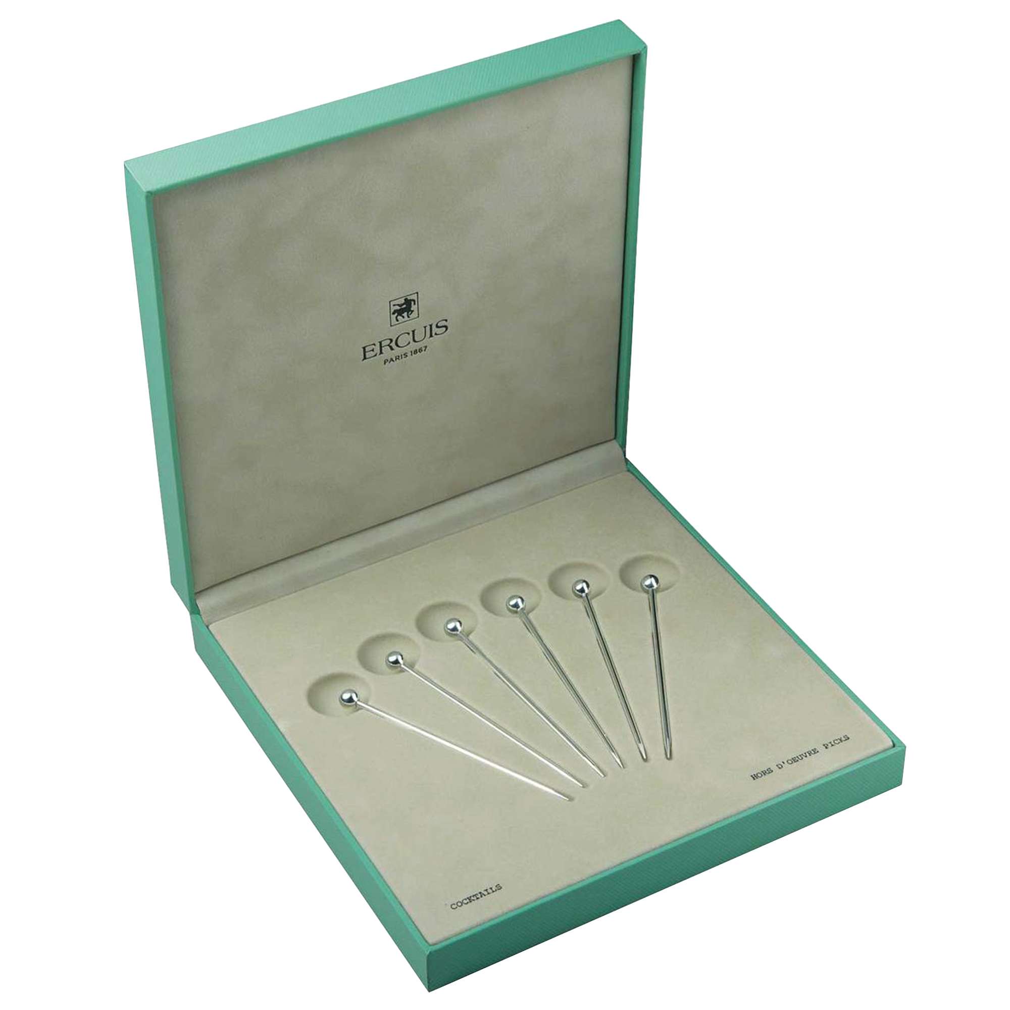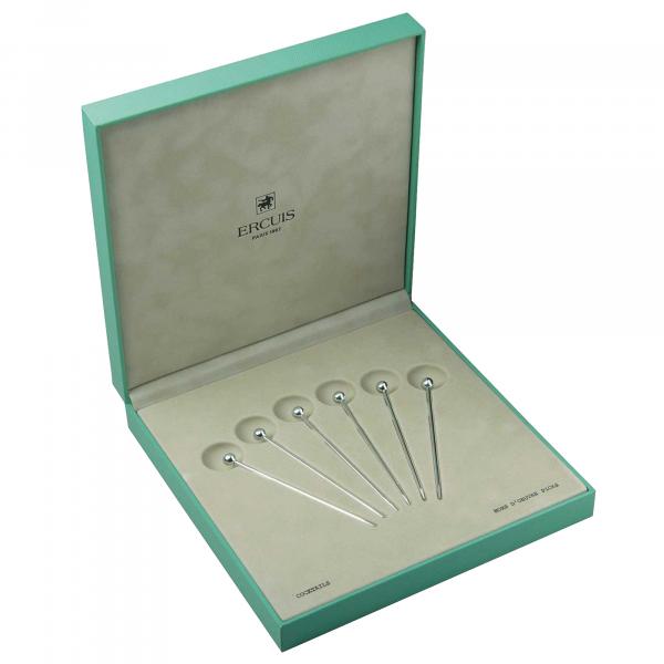 This classic set of six cocktail picks from Ercuis is topped with a simple sphere.