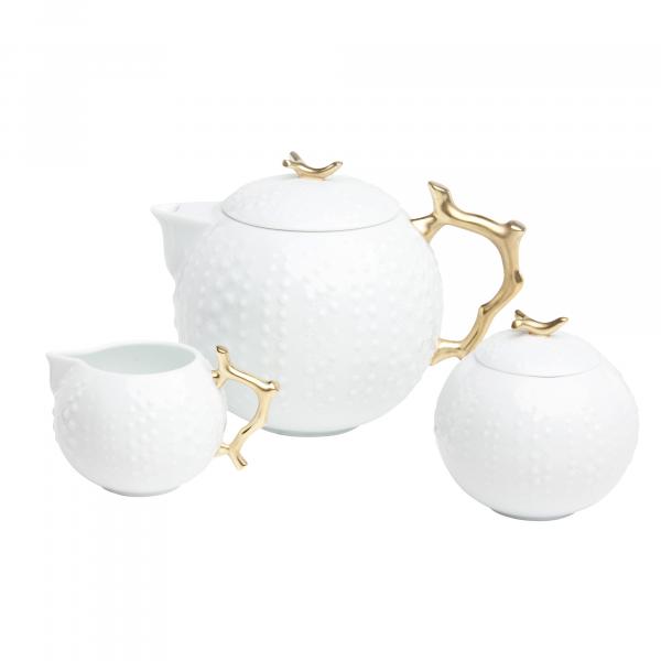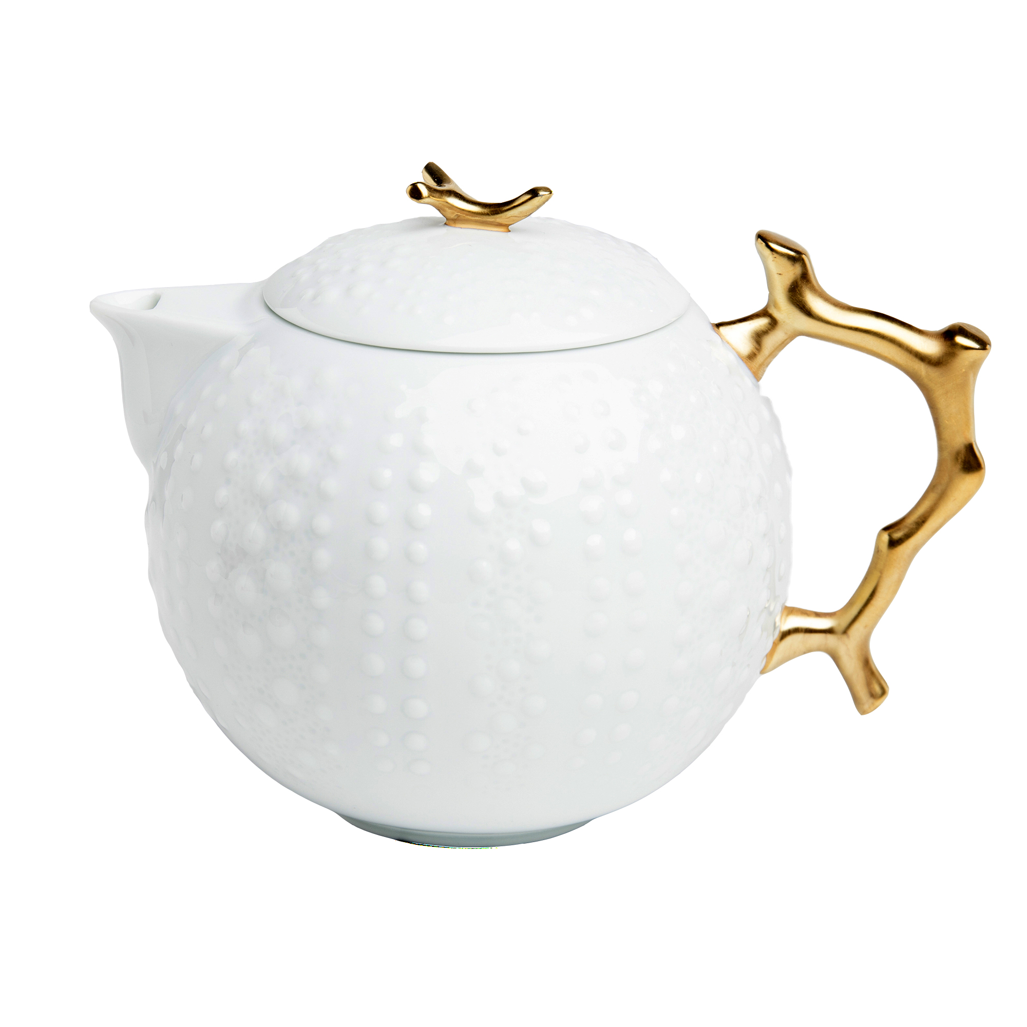 Compliment your seaside style with this whimsical dinnerware. Inspired by the texture of a round coral, each piece features a raised relief pattern of naturalistic bumps and ridges and an elegant gold rim.