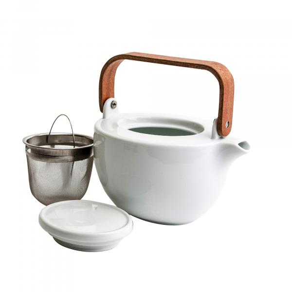 The Chava tea pot harmoniously combines pure white porcelain with warm wooden elements. Indulge in a cup of tea with this chic oval tea pot to recover from stress or tiring daily routines.