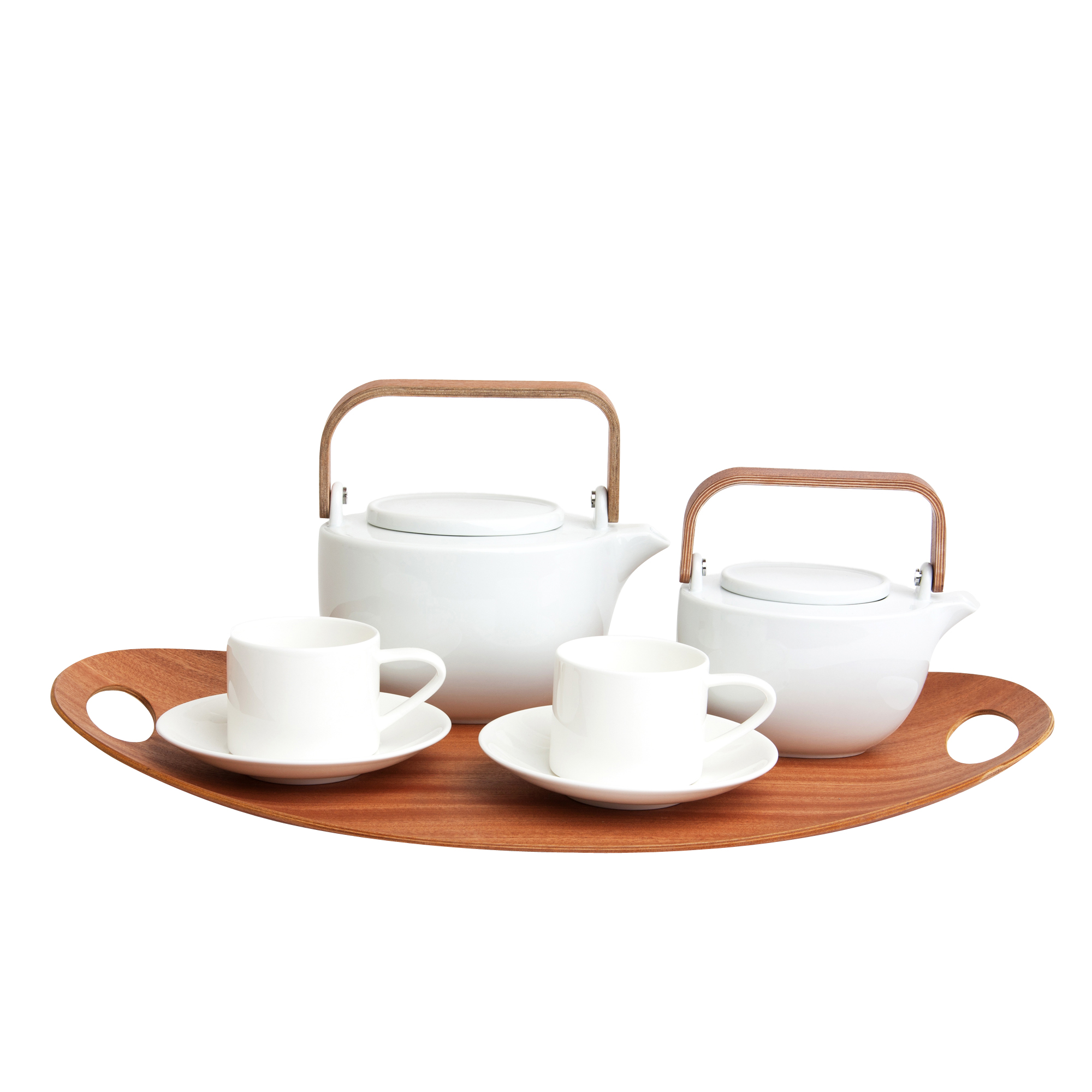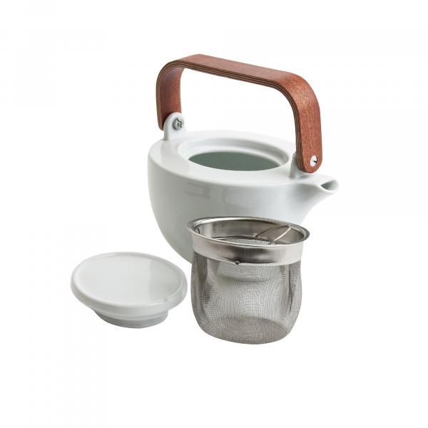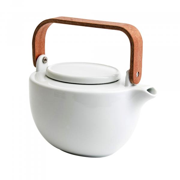 The Chava tea pot harmoniously combines pure white porcelain with warm wooden elements. Indulge in a cup of tea with this chic oval tea pot to recover from stress or tiring daily routines.