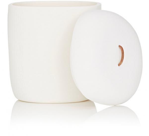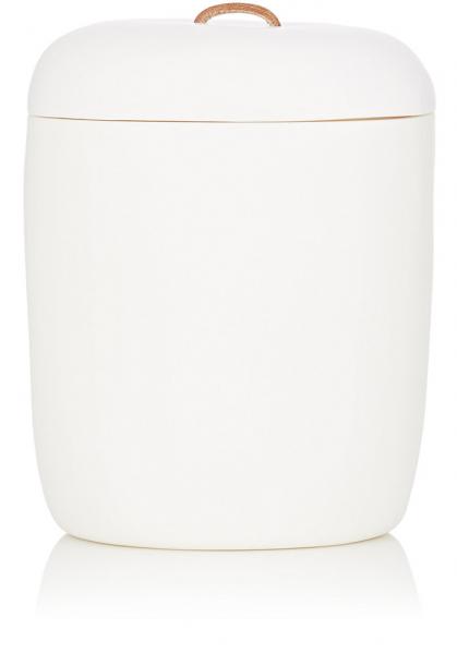 Hand-sculpted in San Francisco of white BPA-free resin, Tina Frey Designs' lidded ice bucket features a brown hand-knotted leather handle.
