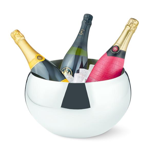 Even before the mirroring shine of the NIZZA champagne cooler touches any kind of ice cubes, it can already be called cool. The voluminous, bulbous shape receives additional elegant coolness from its double-walled shape for long-lasting low temperatures. From that point of view, nights can become longer if the ice-bath is continuously refilled with bottles of bubbly.