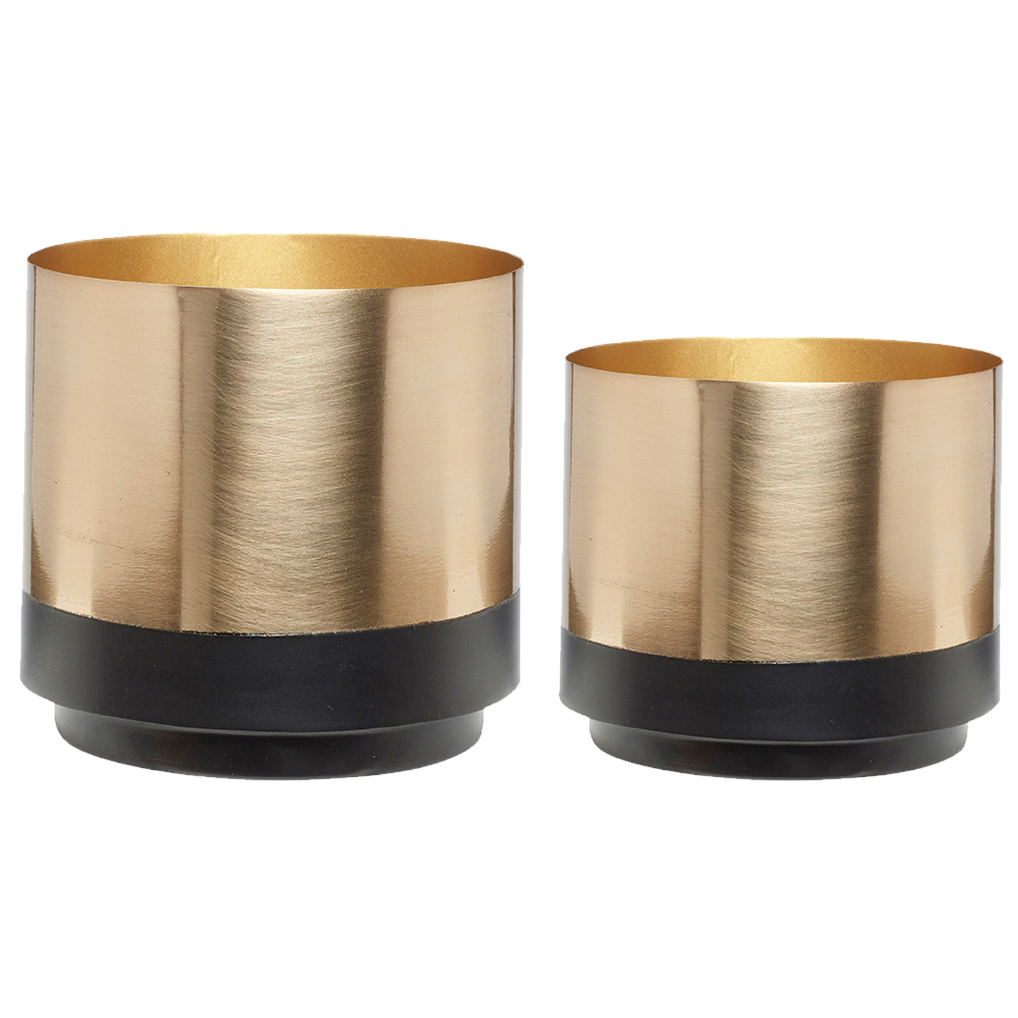 Small brass pot with black base. Great for a plant, as a vase or a storage pot.