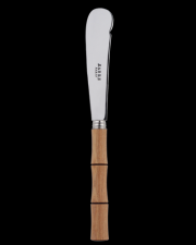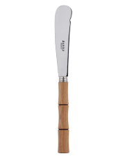 The Sabre Bamboo butter knife has a broad, spatulate tip and moderately sharp edge to cut and spread butter. Also great for very soft cheese without rinds like goat cheese. Dishwasher safe to a maximum of 130°f. Avoid abrasive sponges and strong detergent. Length: 7 3/4"