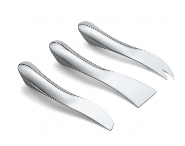 Making precious cheese is an art and to that effect, its consumption is definitely worth celebrating. This is the perfect occasion for the elegant 3-piece WAVE cheese knives set. Thanks to their balanced weightiness, they lie well in the hand and are eye-catchers at the same time. Reduced to the basics, and yet, exclusive and strong in design. In 2011 WAVE was also the PHILIPPI customers’ number one favorite product.