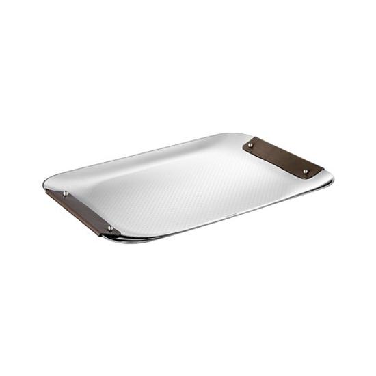 Small silver pleated tray engraved with Pearl pattern from Club Collection. A both useful and decorative object with a clean and simple design. The side handles are covered by a smooth calf leather. This cover ensures a good grip making this tray a very elegant object.